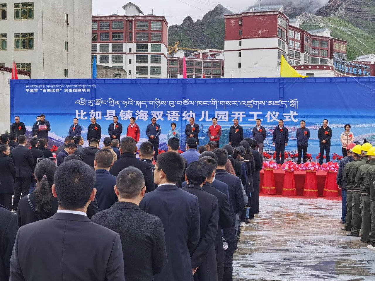 第九批宁波援藏工作组进藏后,在深入调研教育援藏工作时发现,比如县的幼儿教育资源严重短缺,于是在县委主要领导的要求下,利用返浙休整、对接工作时向镇海区主要领导汇报了受援地的这一诉求。经过充分对接沟通,宁波市恒河新材料、石化海达、新福钛白粉、镇海炼化、碧海供水、金宁物资等公司负责人慷慨解囊,决定捐资1000万元用于建设比如县镇海双语幼儿园。8月15日,建筑面积3903.14平方米,共12个班、可容纳学生360人的比如县镇海双语幼儿园项目正式开工建设。