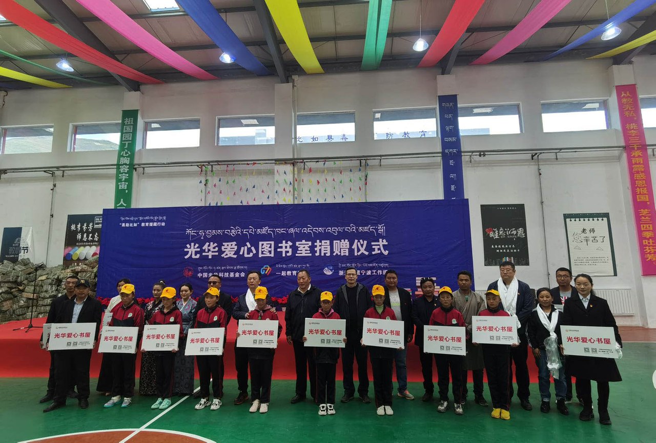 9月14日,“以书载梦 情系羌塘”光华爱心书屋捐赠仪式在比如县第二中学举行。第九批浙江援藏宁波工作组联合中国光华科技基金会向比如县捐赠了200万码洋的图书,向比如县11所中小学幼儿园捐赠了“光华爱心书屋”,一起教育科技向比如县捐赠了价值100万元的数字教育资源。这批爱心书屋、图书与数字教育资源捐赠活动,将为雪域高原的孩子们创造更好的看书学习条件,有力促进比如教育均衡发展。根据约定,中国光华科技基金会将连续三年为那曲市比如县捐赠爱心图书。
