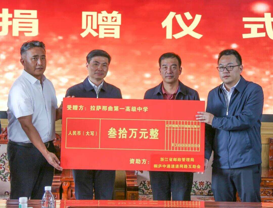 浙江在线9月9日讯 9月9日下午,浙江省邮政管理局、桐庐中通速递网络互助会在拉萨那曲第一高级中学西视频会议室举行捐赠仪式,以帮扶行动推进对口援助实效落地。