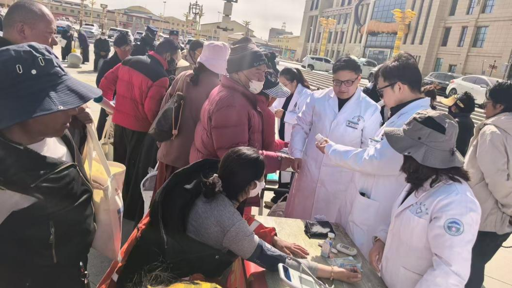 活动现场,医疗工作组专家为当地群众提供免费义诊、健康咨询及血压测量等服务,围绕肿瘤防治、慢性病管理、高原常见病预防等内容开展科普宣传,发放健康宣传资料。专家们耐心解答群众疑问,倡导合理膳食、适量运动、科学防癌的健康生活方式。